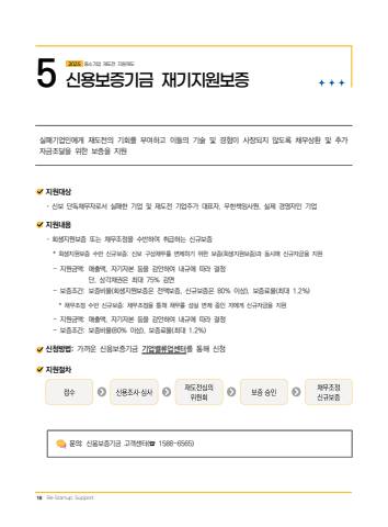 18 Re-Startup Support5 %uc2e0%uc6a9%ubcf4%uc99d%uae30%uae08%u00a0 %uc7ac%uae30%uc9c0%uc6d0%ubcf4%uc99d2025 %uc911%uc18c%uae30%uc5c5%u00a0 %uc7ac%ub3c4%uc804%u00a0 %uc9c0%uc6d0%uc81c%ub3c4%uc2e4%ud328%uae30%uc5c5%uc778%uc5d0%uac8c %uc7ac%ub3c4%uc804%uc758 %uae30%ud68c%ub97c %ubd80%uc5ec%ud558%uace0 %uc774%ub4e4%uc758 %uae30%uc220 %ubc0f %uacbd%ud5d8%uc774 %uc0ac%uc7a5%ub418%uc9c0 %uc54a%ub3c4%ub85d %ucc44%ubb34%uc0c1%ud658 %ubc0f %ucd94%uac00 %uc790%uae08%uc870%ub2ec%uc744 %uc704%ud55c %ubcf4%uc99d%uc744 %uc9c0%uc6d0%uc9c0%uc6d0%ub300%uc0c1%uf09f %uc2e0%ubcf4 %ub2e8%ub3c5%ucc44%ubb34%uc790%ub85c%uc11c %uc2e4%ud328%ud55c %uae30%uc5c5 %ubc0f %uc7ac%ub3c4%uc804 %uae30%uc5c5%uc8fc%uac00 %ub300%ud45c%uc790, %ubb34%ud55c%ucc45%uc784%uc0ac%uc6d0, %uc2e4%uc81c %uacbd%uc601%uc790%uc778 %uae30%uc5c5%uc9c0%uc6d0%ub0b4%uc6a9 %uf09f %ud68c%uc0dd%uc9c0%uc6d0%ubcf4%uc99d %ub610%ub294 %ucc44%ubb34%uc870%uc815%uc744 %uc218%ubc18%ud558%uc5ec %ucde8%uae09%ud558%ub294 %uc2e0%uaddc%ubcf4%uc99d* %ud68c%uc0dd%uc9c0%uc6d0%ubcf4%uc99d %uc218%ubc18 %uc2e0%uaddc%ubcf4%uc99d: %uc2e0%ubcf4 %uad6c%uc0c1%ucc44%ubb34%ub97c %ubcc0%uc81c%ud558%uae30 %uc704%ud55c %ubcf4%uc99d(%ud68c%uc0dd%uc9c0%uc6d0%ubcf4%uc99d)%uacfc %ub3d9%uc2dc%uc5d0 %uc2e0%uaddc%uc790%uae08%uc744 %uc9c0%uc6d0- %uc9c0%uc6d0%uae08%uc561: %ub9e4%ucd9c%uc561, %uc790%uae30%uc790%ubcf8 %ub4f1%uc744 %uac10%uc548%ud558%uc5ec %ub0b4%uaddc%uc5d0 %ub530%ub77c %uacb0%uc815%ub2e8, %uc0c1%uac01%ucc44%uad8c%uc740 %ucd5c%ub300 75% %uac10%uba74- %ubcf4%uc99d%uc870%uac74: %ubcf4%uc99d%ube44%uc728(%ud68c%uc0dd%uc9c0%uc6d0%ubcf4%uc99d%uc740 %uc804%uc561%ubcf4%uc99d, %uc2e0%uaddc%ubcf4%uc99d%uc740 80% %uc774%uc0c1), %ubcf4%uc99d%ub8cc%uc728(%ucd5c%ub300 1.2%) * %ucc44%ubb34%uc870%uc815 %uc218%ubc18 %uc2e0%uaddc%ubcf4%uc99d: %ucc44%ubb34%uc870%uc815%uc744 %ud1b5%ud574 %ucc44%ubb34%ub97c %uc131%uc2e4 %ubcc0%uc81c %uc911%uc778 %uc790%uc5d0%uac8c %uc2e0%uaddc%uc790%uae08%uc744 %uc9c0%uc6d0- %uc9c0%uc6d0%uae08%uc561: %ub9e4%ucd9c%uc561, %uc790%uae30%uc790%ubcf8 %ub4f1%uc744 %uac10%uc548%ud558%uc5ec %ub0b4%uaddc%uc5d0 %ub530%ub77c %uacb0%uc815- %ubcf4%uc99d%uc870%uac74: %ubcf4%uc99d%ube44%uc728(80% %uc774%uc0c1), %ubcf4%uc99d%ub8cc%uc728(%ucd5c%ub300 1.2%)%uc2e0%uccad%ubc29%ubc95: %uac00%uae4c%uc6b4 %uc2e0%uc6a9%ubcf4%uc99d%uae30%uae08 %uae30%uc5c5%ubc38%ub958%uc5c5%uc13c%ud130%ub97c %ud1b5%ud574 %uc2e0%uccad%uc9c0%uc6d0%uc808%ucc28 %ubb38%uc758: %uc2e0%uc6a9%ubcf4%uc99d%uae30%uae08 %uace0%uac1d%uc13c%ud130(%u260e 1588-6565)