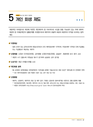 Chapter 2. %uac1c%uc778%u00a0 %ucc44%ubb34%uc870%uc815%u00a0 %ubc0f%u00a0 %uc2e0%uc6a9%ud68c%ubcf5%u00a0 %uc9c0%uc6d0PART 1. %uc7ac%ucc3d%uc5c5%uc9c0%uc6d0 375 %uac1c%uc778%u00a0 %ud68c%uc0dd%u00a0 %uc81c%ub3c42025 %uc911%uc18c%uae30%uc5c5%u00a0 %uc7ac%ub3c4%uc804%u00a0 %uc9c0%uc6d0%uc81c%ub3c4%uc7ac%uc815%uc801%uc778 %uc5b4%ub824%uc6c0%uc73c%ub85c %ud30c%ud0c4%uc5d0 %uc9c1%uba74%ud55c %uac1c%uc778%ucc44%ubb34%uc790 %uc911 %uc9c0%uc18d%uc801%uc73c%ub85c %uc218%uc785%uc744 %uc5bb%uc744 %uac00%ub2a5%uc131%uc774 %uc788%ub294 %uc790%uc5d0 %ub300%ud558%uc5ec %ucc44%uad8c%uc790 %ub4f1 %uc774%ud574%uad00%uacc4%uc778%uc758 %ubc95%ub960%uad00%uacc4%ub97c %uc870%uc815%ud568%uc73c%ub85c%uc368 %ucc44%ubb34%uc790%uc758 %ud6a8%uc728%uc801 %ud68c%uc0dd%uacfc %ucc44%uad8c%uc790%uc758 %uc774%uc775%uc744 %ub3c4%ubaa8%ud558%ub294 %ubc95%uc801 %uc81c%ub3c4%uc9c0%uc6d0%ub300%uc0c1%uf09f %uc77c%uc815 %uc18c%ub4dd%uc774 %uc788%ub294 %uae09%uc5ec%uc18c%ub4dd%uc790%uc640 %uc601%uc5c5%uc18c%ub4dd%uc790%ub85c%uc11c %uacfc%ub2e4 %ucc44%ubb34(%ub2f4%ubcf4%ucc44%ubb34 15%uc5b5%uc774%ud558, %ubb34%ub2f4%ubcf4%ucc44%ubb34 10%uc5b5)%ub85c %uc778%ud574 %uc9c0%uae09%ubd88%ub2a5 %ub610%ub294 %uc9c0%uae09%ubd88%ub2a5%uc774 %uc608%uc0c1%ub418%ub294 %ucc44%ubb34%uc790%uc2e0%uccad%ube44%uc6a9: %uc2e0%uccad%uc11c %uc778%uc9c0%ub300(3%ub9cc%uc6d0), %uae08%uc9c0%uba85%ub839 %uc2e0%uccad%uc778%uc9c0%ub300(2%ucc9c%uc6d0), %uc1a1%ub2ec%ub8cc*, %ud68c%uc0dd%uc704%uc6d0 %ubcf4%uc218 %ub4f1%uc774 %uc18c%uc694* %ucc44%uad8c%uc790 %uc218%uac00 %ub9ce%uc744%uc218%ub85d %uc6b0%ud3b8%uc1a1%ub2ec %ud69f%uc218%uac00 %uc99d%uac00%ud558%uc5ec %uc1a1%ub2ec%ub8cc%ub3c4 %uac19%uc774 %uc99d%uac00%ud568%uc18c%uc694%uae30%uac04: %ud3c9%uade0 4%uac1c%uc6d4~6%uac1c%uc6d4 %uc18c%uc694%uac1c%uc778%ud68c%uc0dd %ud6a8%ub825%uf09f %uc6d4 %uc18c%ub4dd%uc5d0%uc11c %uc0dd%uacc4%ube44(%ud1b5%uc0c1 %ucd5c%uc800%uc0dd%uacc4%ube44%uc758 150%)%ub97c %uacf5%uc81c%ud55c %uac00%uc6a9%uc18c%ub4dd%uc73c%ub85c %ucd5c%uc7a5 3%ub144%uac04* %ucc44%ubb34%uc0c1%ud658 %ud6c4 %uc794%uc5ec%ucc44%ubb34 %uba74%ucc45* %ub2e4%ub9cc %ucc44%ubb34%uc790%ud68c%uc0dd%ubc95%uc5d0%uc11c %uc815%ud55c %ud2b9%ubcc4%ud55c %uc0ac%uc815%uc774 %uc788%ub294 %uacbd%uc6b0 %ucd5c%uc7a5 5%ub144 %uc774%ub0b4%uc2e0%uccad%ubc29%ubc95 %uf09f %ucc44%ubb34%uc790, %uc2e0%uccad%ucde8%uc9c0, %ucc44%ubb34%uc790%uc758 %uc7ac%uc0b0 %ubc0f %ucc44%ubb34 %ub4f1%uc774 %uae30%uc7ac%ub41c %uc2e0%uccad%uc11c%uc640 %ucca8%ubd80%uc11c%ub958*%ub97c %uc11c%uba74%uc73c%ub85c %uad00%ud560 %ubc95%uc6d0%uc5d0 %uc81c%ucd9c* %uac1c%uc778%ud68c%uc0dd%ucc44%uad8c%uc790%ubaa9%ub85d, %uc7ac%uc0b0%ubaa9%ub85d, %ucc44%ubb34%uc790%uc758 %uc218%uc785 %ubc0f %uc9c0%ucd9c %ubaa9%ub85d, %uae09%uc5ec%uc18c%ub4dd%uc790 %ub610%ub294 %uc601%uc5c5%uc18c%ub4dd%uc790%uc784%uc744 %uc99d%uba85%ud558%ub294 %uc11c%ub958, %uc9c4%uc220%uc11c %ub4f1 * %ub300%ubc95%uc6d0 %uc804%uc790%ubbfc%uc6d0%uc13c%ud130 http://help.scourt.go.kr/ Quick Menu%uc758 [%uc591%uc2dd%ubaa8%uc74c]%uc5d0%uc11c %ud655%uc778