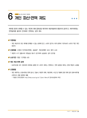 Chapter 2. %uac1c%uc778%u00a0 %ucc44%ubb34%uc870%uc815%u00a0 %ubc0f%u00a0 %uc2e0%uc6a9%ud68c%ubcf5%u00a0 %uc9c0%uc6d0PART 1. %uc7ac%ucc3d%uc5c5%uc9c0%uc6d0 396 %uac1c%uc778%u00a0 %ud30c%uc0b0%u00b7%uba74%ucc45%u00a0 %uc81c%ub3c42025 %uc911%uc18c%uae30%uc5c5%u00a0 %uc7ac%ub3c4%uc804%u00a0 %uc9c0%uc6d0%uc81c%ub3c4%ucc44%ubb34%ub97c %uc644%uc804%ud788 %ubcc0%uc81c%ud560 %uc218 %uc5c6%ub294 %uac1c%uc778%uc5d0 %ub300%ud574 %ucd1d%uc7ac%uc0b0%uc744 %ub9e4%uac01%ud558%uc5ec %ucc44%uad8c%uc790%ub4e4%uc5d0%uac8c %ud3c9%ub4f1%ud558%uac8c %uac1a%uc544%uc8fc%uace0, %ucc44%ubb34%uc790%uc5d0%uac8c%ub294 %uba74%ucc45%uc808%ucc28%ub97c %ud1b5%ud558%uc5ec %uc794%uc5ec%ucc44%ubb34 %uba74%ucc45%ud558%ub294 %ubc95%uc801 %uc81c%ub3c4%uc9c0%uc6d0%ub300%uc0c1%uf09f %uac1c%uc778 %uc7ac%uc0b0%uc73c%ub85c %ubaa8%ub4e0 %ucc44%ubb34%ub97c %ubcc0%uc81c%ud560 %uc218 %uc5c6%ub294 %uc0c1%ud0dc%uc5d0 %uc788%uace0, %uc18c%ub4dd%uc774 %uc5c6%uac70%ub098 %ucd5c%uc800 %uc0dd%uacc4%ube44 150%%ubcf4%ub2e4 %uc18c%ub4dd%uc774 %uc801%uc740 %uac1c%uc778%ucc44%ubb34%uc790%uc2e0%uccad%ube44%uc6a9: %uc2e0%uccad%uc11c %uc778%uc9c0%ub300(2%ucc9c%uc6d0), %uc1a1%ub2ec%ub8cc*, %ud30c%uc0b0%uad00%uc7ac%uc778 %ubcf4%uc218 %ub4f1%uc774 %uc18c%uc694* %ucc44%uad8c%uc790 %uc218%uac00 %ub9ce%uc744%uc218%ub85d %uc6b0%ud3b8%uc1a1%ub2ec %ud69f%uc218%uac00 %uc99d%uac00%ud558%uc5ec %uc1a1%ub2ec%ub8cc%ub3c4 %uac19%uc774 %uc99d%uac00%ud568%uc18c%uc694%uae30%uac04: %ud3c9%uade0 12%uac1c%uc6d4 %uc18c%uc694%uac1c%uc778 %ud30c%uc0b0%u00b7%uba74%ucc45 %ud6a8%ub825 %uf09f %ubcf4%uc720%uc790%uc0b0%uc744 %ubaa8%ub450 %uc815%ub9ac%ud558%uc5ec %ucc44%ubb34%ub97c %uc0c1%ud658%ud55c %ud6c4 %ub098%uba38%uc9c0 %ucc44%ubb34%ub294 %uba74%ucc45%ub418%uace0, %uba74%ucc45 %uacb0%uc815%ub41c %ucc44%ubb34%ub294 %ubcc0%uc81c %ucc45%uc784%uc774 %uc18c%uba78%ub428%uc2e0%uccad%ubc29%ubc95 %uf09f %uac1c%uc778 %ucc44%ubb34%uc790%ub294 %uc2e0%uccad%uc11c(%ud30c%uc0b0%u00b7%uba74%ucc45 %ub3d9%uc2dc), %uc9c4%uc220%uc11c, %ucc44%uad8c%uc790 %ubaa9%ub85d, %uc7ac%uc0b0%ubaa9%ub85d, %uc218%uc785 %ubc0f %uc9c0%ucd9c%uc5d0 %uad00%ud55c %ubaa9%ub85d %ub4f1%uc758 %ucca8%ubd80%uc11c%ub958*%ub97c %uc11c%uba74%uc73c%ub85c %uad00%ud560 %ubc95%uc6d0%uc5d0 %uc81c%ucd9c* %ub300%ubc95%uc6d0 %uc804%uc790%ubbfc%uc6d0%uc13c%ud130 http://help.scourt.go.kr/ Quick Menu%uc758 [%uc591%uc2dd%ubaa8%uc74c]%uc5d0%uc11c %ud655%uc778