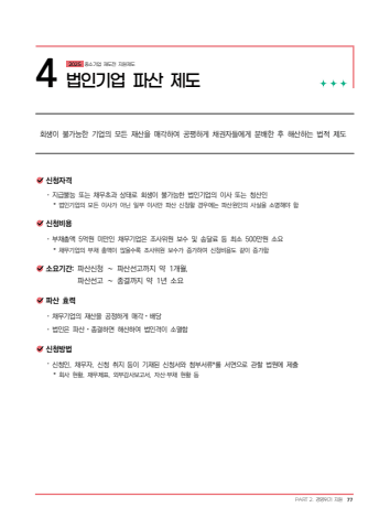 Chapter 2. %uc911%uc18c%uae30%uc5c5%u00a0 %uc0ac%uc5c5%uc815%ub9ac%u00a0PART 2. %uacbd%uc601%uc704%uae30 %uc9c0%uc6d0 774 %ubc95%uc778%uae30%uc5c5%u00a0 %ud30c%uc0b0%u00a0 %uc81c%ub3c42025 %uc911%uc18c%uae30%uc5c5%u00a0 %uc7ac%ub3c4%uc804%u00a0 %uc9c0%uc6d0%uc81c%ub3c4%ud68c%uc0dd%uc774 %ubd88%uac00%ub2a5%ud55c %uae30%uc5c5%uc758 %ubaa8%ub4e0 %uc7ac%uc0b0%uc744 %ub9e4%uac01%ud558%uc5ec %uacf5%ud3c9%ud558%uac8c %ucc44%uad8c%uc790%ub4e4%uc5d0%uac8c %ubd84%ubc30%ud55c %ud6c4 %ud574%uc0b0%ud558%ub294 %ubc95%uc801 %uc81c%ub3c4 %uc2e0%uccad%uc790%uaca9%uf09f %uc9c0%uae09%ubd88%ub2a5 %ub610%ub294 %ucc44%ubb34%ucd08%uacfc %uc0c1%ud0dc%ub85c %ud68c%uc0dd%uc774 %ubd88%uac00%ub2a5%ud55c %ubc95%uc778%uae30%uc5c5%uc758 %uc774%uc0ac %ub610%ub294 %uccad%uc0b0%uc778* %ubc95%uc778%uae30%uc5c5%uc758 %ubaa8%ub4e0 %uc774%uc0ac%uac00 %uc544%ub2cc %uc77c%ubd80 %uc774%uc0ac%ub9cc %ud30c%uc0b0 %uc2e0%uccad%ud560 %uacbd%uc6b0%uc5d0%ub294 %ud30c%uc0b0%uc6d0%uc778%uc758 %uc0ac%uc2e4%uc744 %uc18c%uba85%ud574%uc57c %ud568%uc2e0%uccad%ube44%uc6a9%uf09f %ubd80%ucc44%ucd1d%uc561 5%uc5b5%uc6d0 %ubbf8%ub9cc%uc778 %ucc44%ubb34%uae30%uc5c5%uc740 %uc870%uc0ac%uc704%uc6d0 %ubcf4%uc218 %ubc0f %uc1a1%ub2ec%ub8cc %ub4f1 %ucd5c%uc18c 500%ub9cc%uc6d0 %uc18c%uc694* %ucc44%ubb34%uae30%uc5c5%uc758 %ubd80%ucc44 %ucd1d%uc561%uc774 %ub9ce%uc744%uc218%ub85d %uc870%uc0ac%uc704%uc6d0 %ubcf4%uc218%uac00 %uc99d%uac00%ud558%uc5ec %uc2e0%uccad%ube44%uc6a9%ub3c4 %uac19%uc774 %uc99d%uac00%ud568%uc18c%uc694%uae30%uac04: %ud30c%uc0b0%uc2e0%uccad %u223c %ud30c%uc0b0%uc120%uace0%uae4c%uc9c0 %uc57d 1%uac1c%uc6d4, %ud30c%uc0b0%uc120%uace0 %u223c %uc885%uacb0%uae4c%uc9c0 %uc57d 1%ub144 %uc18c%uc694%ud30c%uc0b0 %ud6a8%ub825%uf09f %ucc44%ubb34%uae30%uc5c5%uc758 %uc7ac%uc0b0%uc744 %uacf5%uc815%ud558%uac8c %ub9e4%uac01%u22c5%ubc30%ub2f9%uf09f %ubc95%uc778%uc740 %ud30c%uc0b0%u22c5%uc885%uacb0%ud558%uba74 %ud574%uc0b0%ud558%uc5ec %ubc95%uc778%uaca9%uc774 %uc18c%uba78%ud568%uc2e0%uccad%ubc29%ubc95%uf09f %uc2e0%uccad%uc778, %ucc44%ubb34%uc790, %uc2e0%uccad %ucde8%uc9c0 %ub4f1%uc774 %uae30%uc7ac%ub41c %uc2e0%uccad%uc11c%uc640 %ucca8%ubd80%uc11c%ub958*%ub97c %uc11c%uba74%uc73c%ub85c %uad00%ud560 %ubc95%uc6d0%uc5d0 %uc81c%ucd9c* %ud68c%uc0ac %ud604%ud669, %uc7ac%ubb34%uc81c%ud45c, %uc678%ubd80%uac10%uc0ac%ubcf4%uace0%uc11c, %uc790%uc0b0%u00b7%ubd80%ucc44 %ud604%ud669 %ub4f1